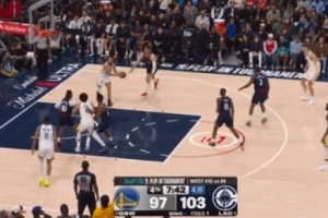 GIF-波尔津吉斯妙传库里 后者上空篮得分