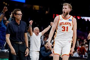 本场比赛,老鹰中锋兰代尔高效发挥,首发34分钟11投7中,三分3中2、罚球5中3拿到19分13篮板4助攻2盖帽,正负值+25。