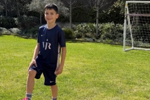巴斯克斯社媒晒出孩子身穿维尼修斯赠送的球衣的照片,配文:“非常感谢维尼修斯,我们爱你。”